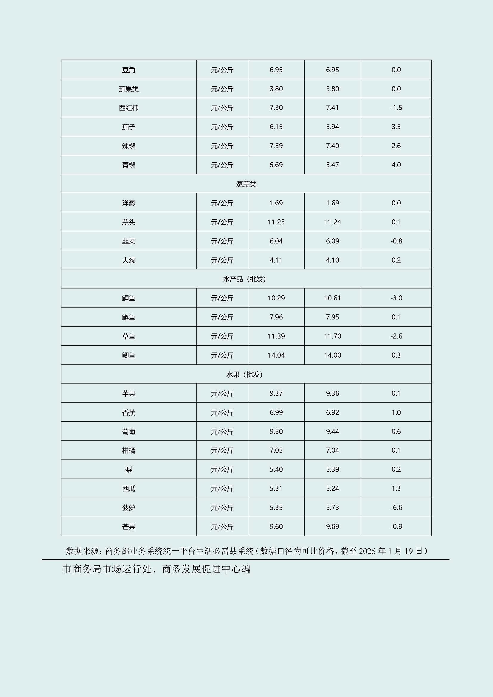 武汉市生活必需品市场监测情况(2026年1月19日—2026年1月25日)
