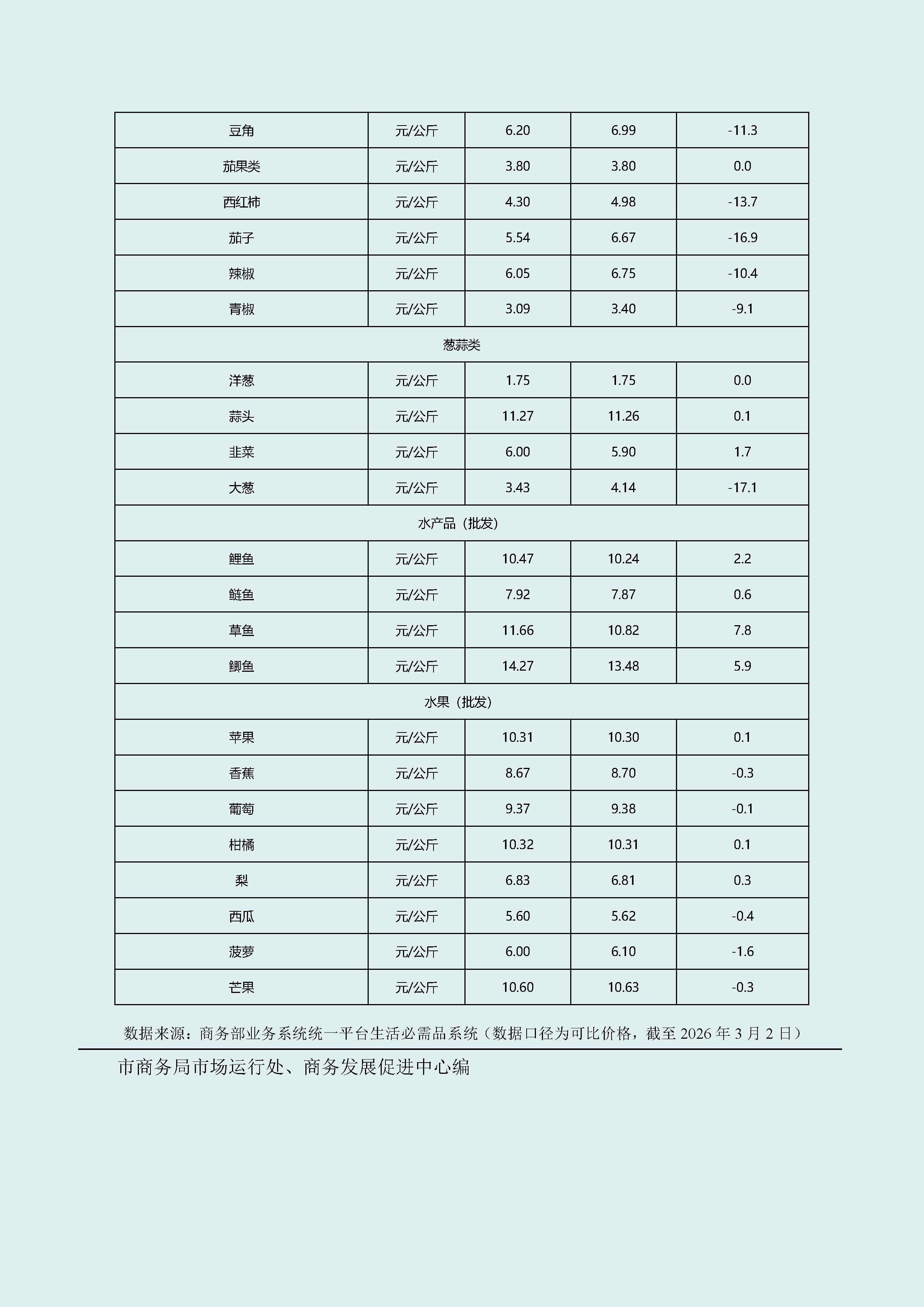 武汉市生活必需品市场监测情况(2026年3月02日—2026年3月08日)