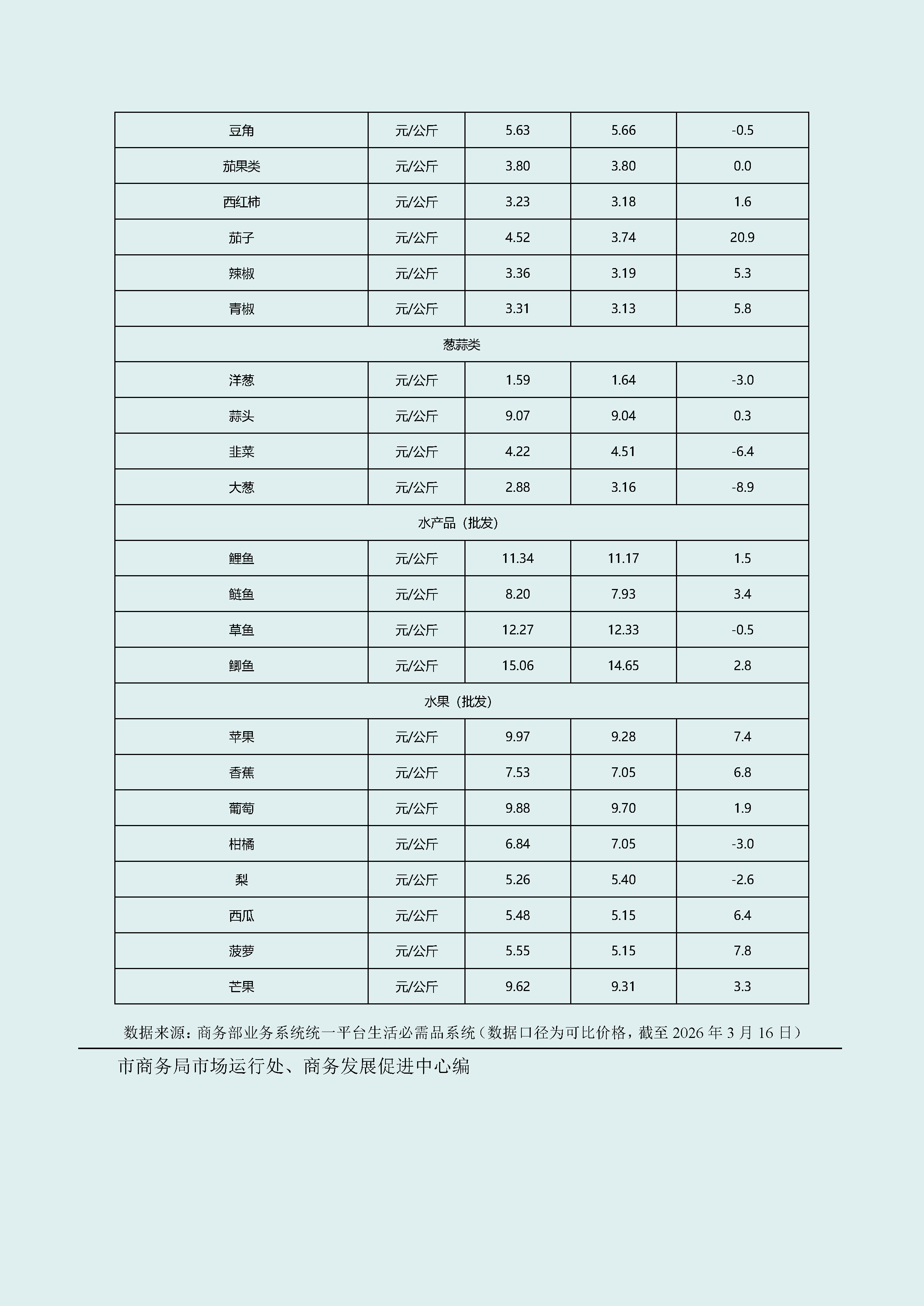 武汉市生活必需品市场监测情况(2026年3月09日—2026年3月15日)