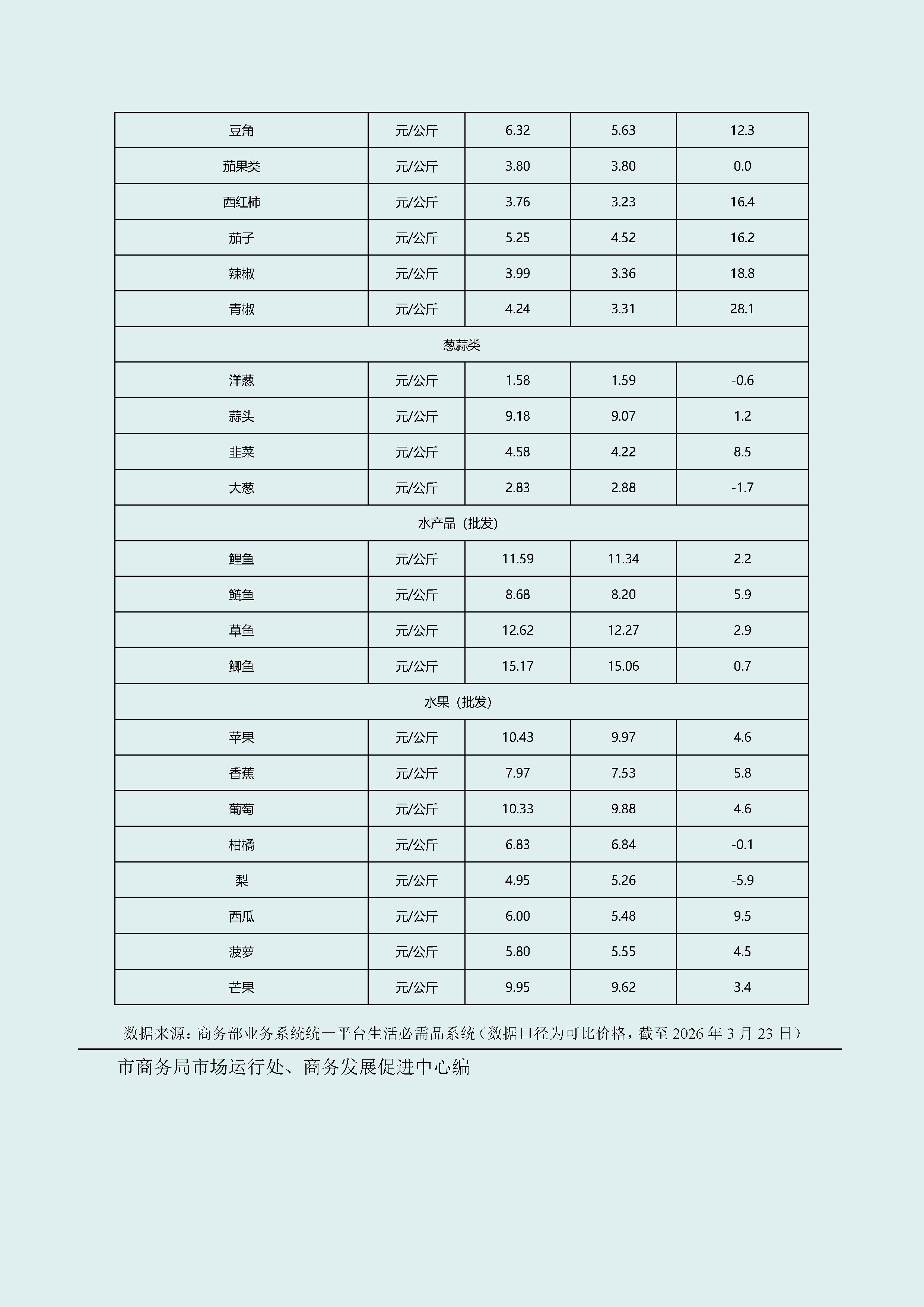 武汉市生活必需品市场监测情况(2026年3月16日—2026年3月22日)