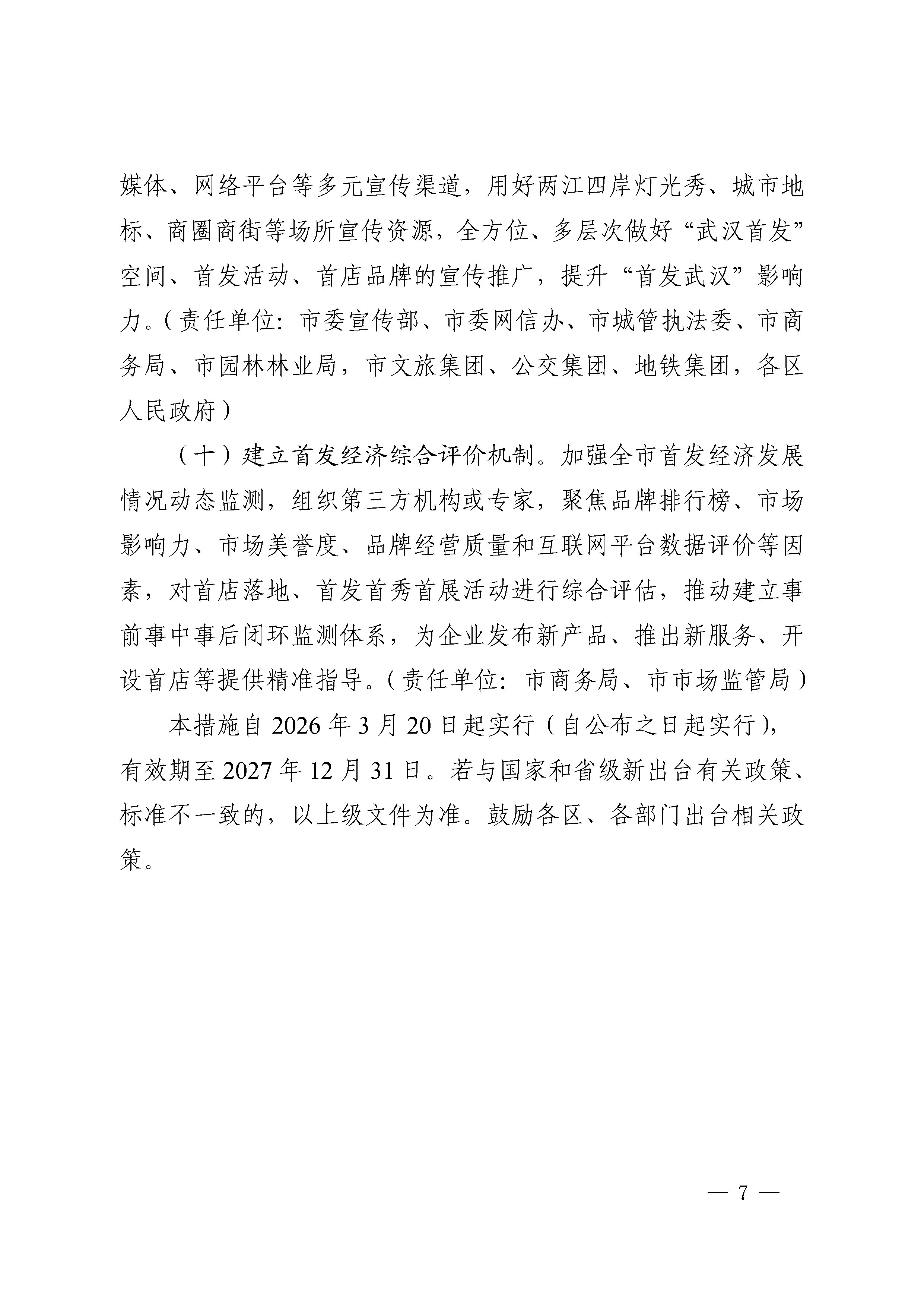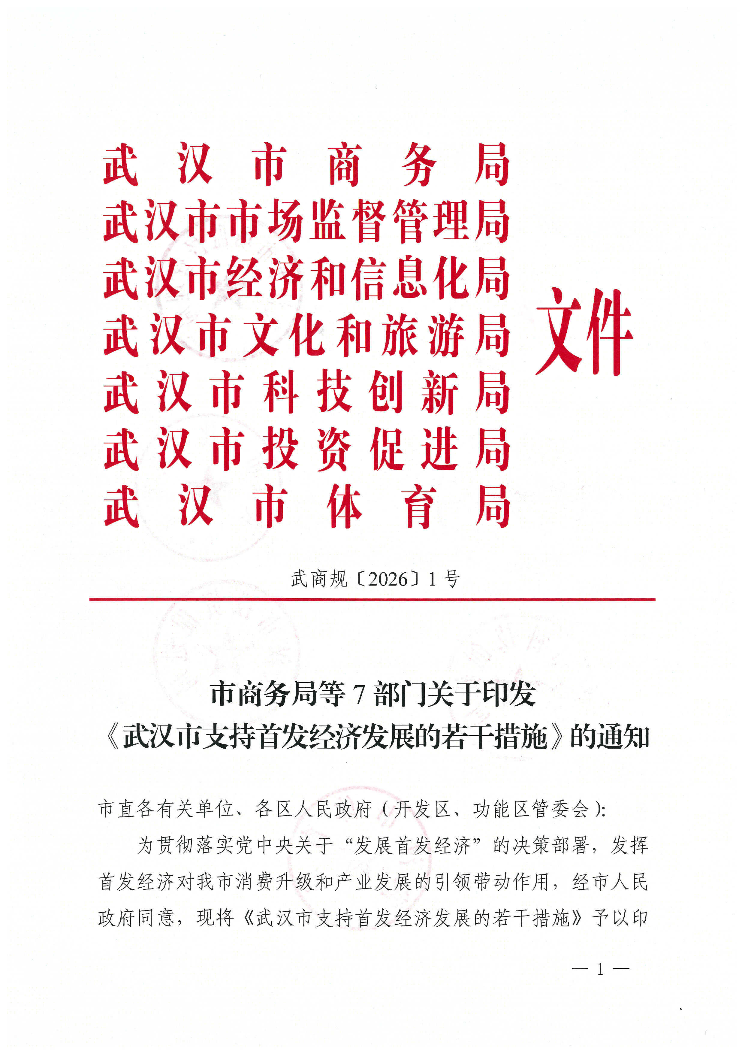 市商务局等7部门关于印发《武汉市支持首发经济发展的若干措施》的通知