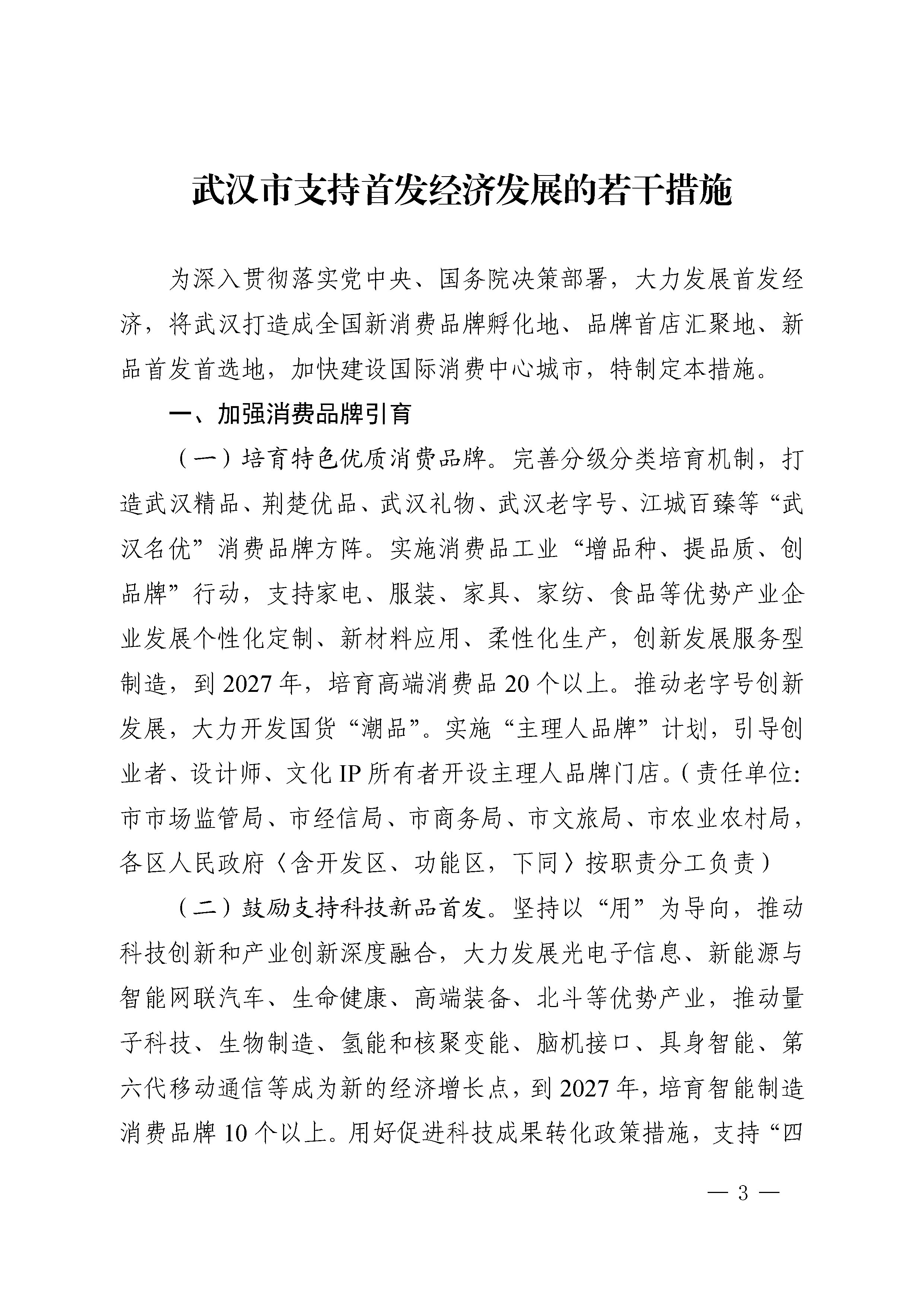 市人民政府关于印发武汉市创建国际消费中心城市三年行动方案(2025—2027年)的通知